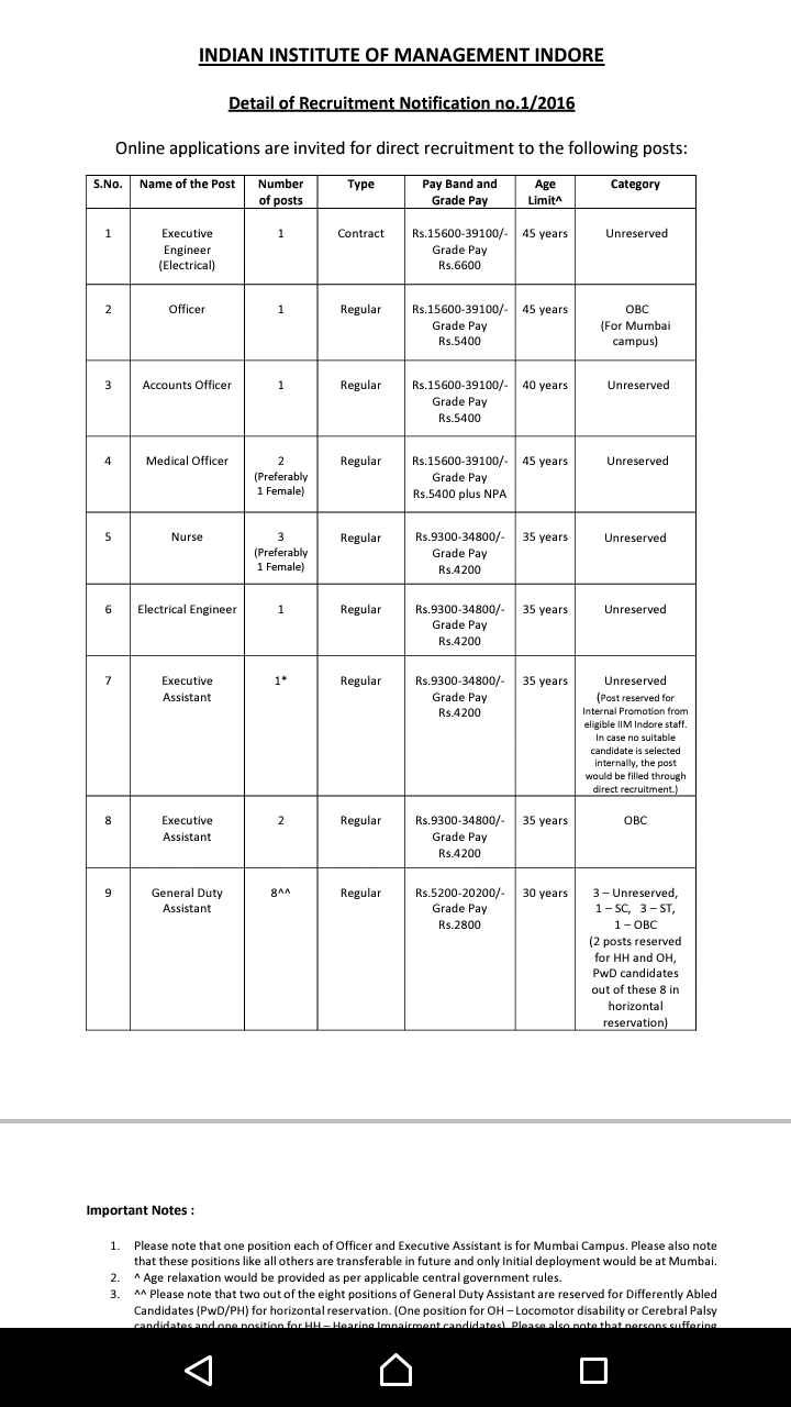 4. The pay scales are indicative. IIM Indore would be happy to consider an appropriate salary (which may be higher or lower than the scale mentioned against the post) and may also relax the age limit appropriately in exceptional deserving cases.